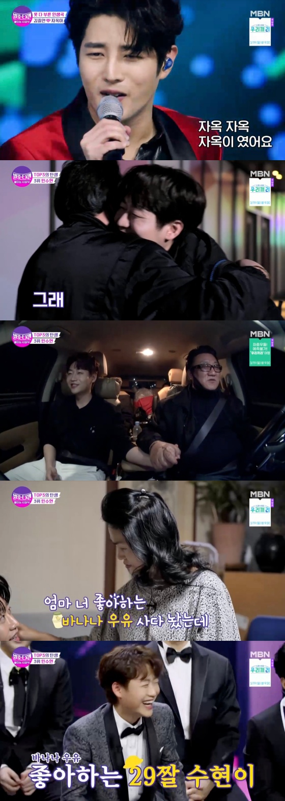 한편 3위를 차지한 민수현은 생방송을 마치고 밖에서 기다리고 있던 아버지에 "3등 했다"고 말했다. 아버지는 "고생했다"며 민수현을 축하했다. 이후 민수현은 아버지와 대전 본가로 향했다. 민수현의 아버지는 운전 중 민수현의 손을 잡으며 "엄마가 많이 울었을거다"라며 걱정했다. 민수현의 어머니는 민수현을 보자 울먹였다. 이어 민수현에 "잘했어"라며 포옹했다. 어머니는 "너 좋아하는 바나나 우유 사놨다"라고 말해 웃음을 안겼다. 어머니는 민수현을 보며 계속 울먹였다. 어머니는 "좋은 선물이었다. 아들 얼굴 보니까 안심이 된다. 꿈만 같다"며 민수현을 안았다.