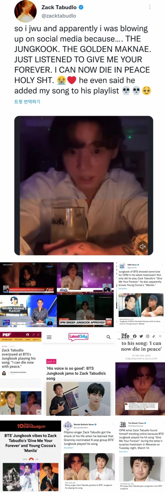 [문완식 스타뉴스 기자] 방탄소년단(BTS) 정국이 필리핀 가수를 극찬해 뜨거운 관심을 모았다.