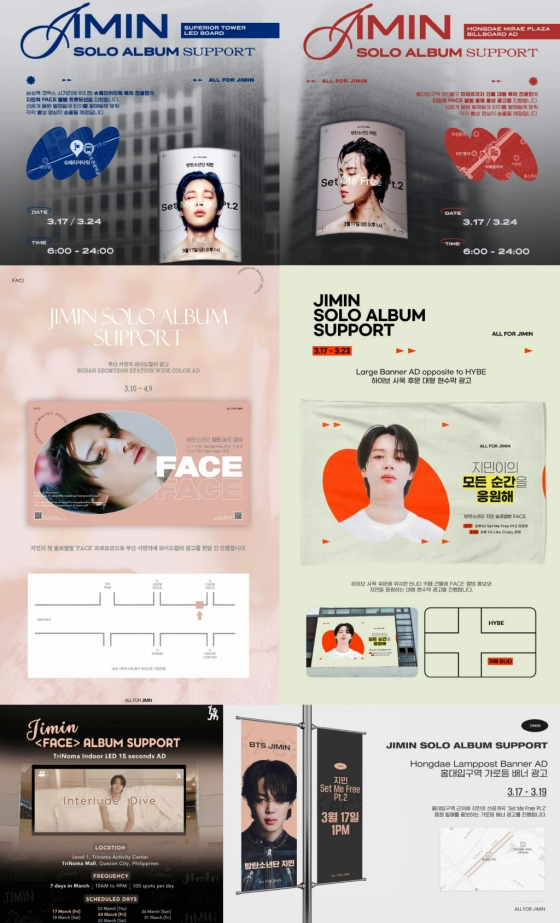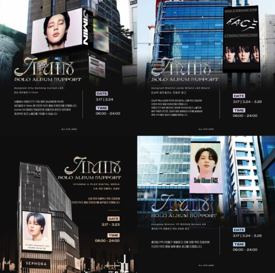 [문완식 스타뉴스 기자] 방탄소년단(BTS) 지민의 팬들이 서울 도심 곳곳에서 뜨거운 서포트로 솔로 앨범 '페이스'(FACE) 응원에 나섰다.