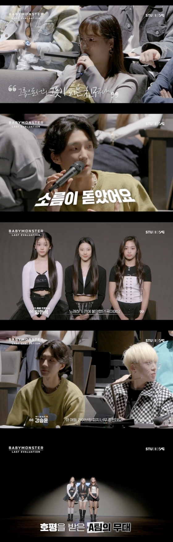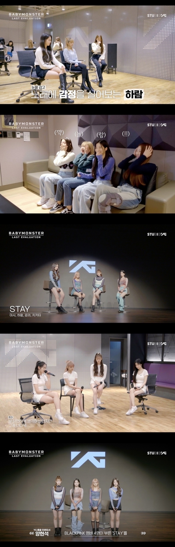 YG는 17일 공식 블로그에 BABYMONSTER - 'Last Evaluation' EP.2를 게재했다. 지난주 예고된 A팀 루카·파리타·아현의 블랙핑크 로제 'Gone' 커버 무대부터 아사·하람·로라·치키타가 B팀이 되어 미션을 위해 값진 구슬땀을 흘리는 과정이 담긴 영상이다.
