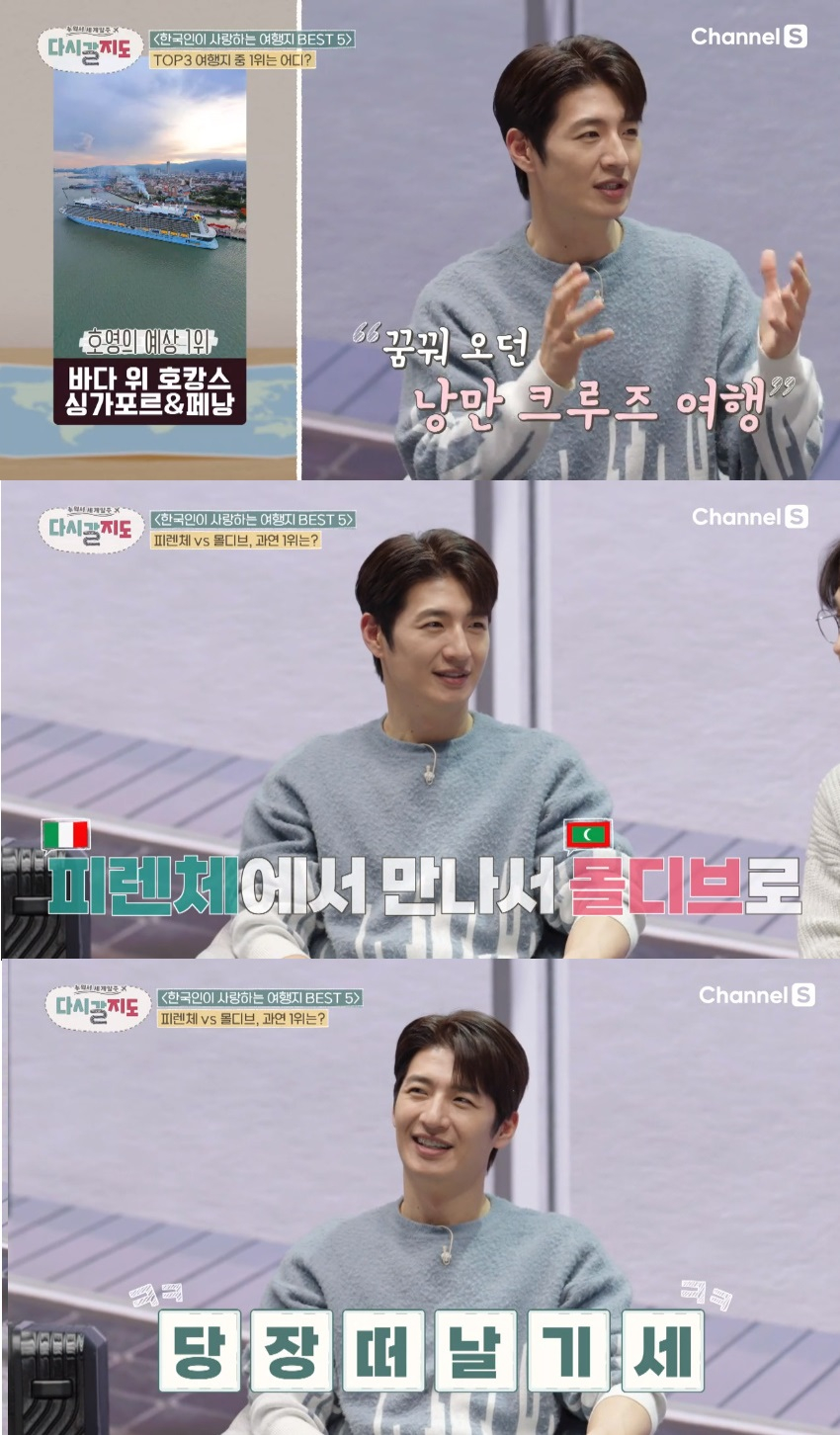이어 '한국인이 사랑하는 여행지 1위' 선택에 손호영은 '바다 위 호캉스 싱가포르&페낭'을 꼽으며 낭만 크루즈 여행을 꿈꿨다고 밝혔다.