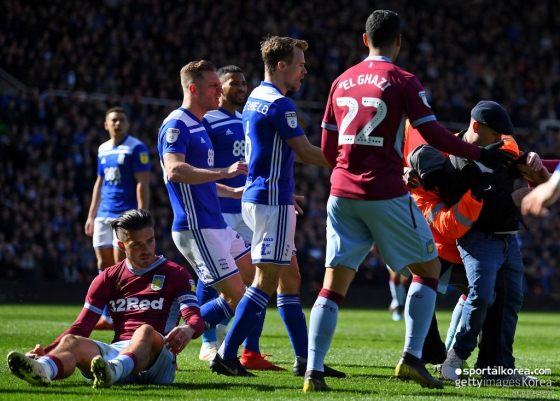 때는 2019년 3월 10일. 그릴리쉬가 애스턴 빌라에 몸담고 있던 시기였다. 빌라와 버밍엄 시티전이 한창 진행되던 중 한 남성이 경기장에 난입했다.