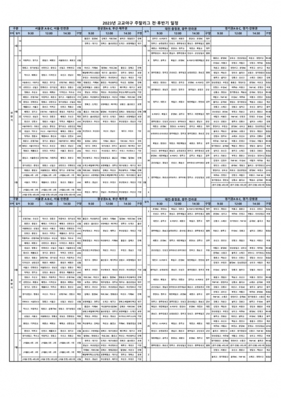 대한야구소프트볼협회(KBSA)는 "교육부, 문화체육관광부와 공동으로 주최하는 2023 고교야구 주말리그가 18일부터 청주, 함평, 진해, 대구 등에서 개막한다"고 17일 밝혔다.