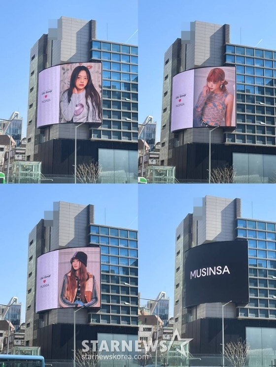 스타뉴스가 최근 확인한 결과, 무신사 스탠다드 성수 매장 근처에는 새 모델 뉴진스가 대형 설치물로 건물 벽면을 가득 채우고 있었고 유아인의 흔적은 어디에도 없었다. 무신사가 개발한 유아인의 가상인간 AI 모델 '무아인'이 시그니처로 자리잡고 있던 무신사 스탠다드 강남 매장에는 무아인의 형체는 온데간데없이 로고 및 기하학 형태의 3D 아트웍 그래픽 영상만 흘러나왔다. 무신사 스탠다드 강남 매장 근처 구 교보타워 사거리의 대형 전광판에는 뉴진스 멤버들의 무신사 화보와 함께 'NEW JEANS♥MUSINSA'란 문구가 광고로 노출되고 있었다.