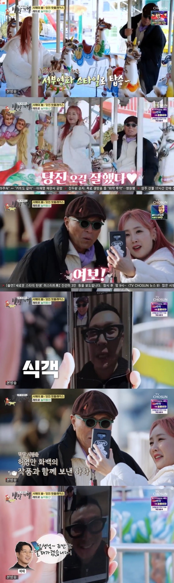 이날 별은 허영만에게 "남편(하하)이 '백반기행' 나간다고 하니까 부러워했다"라며 영상통화를 걸었다. 별은 하하에게 "여보 나 허영만 선생님이랑 놀이공원 데이트 중이야"라고 자랑했다.