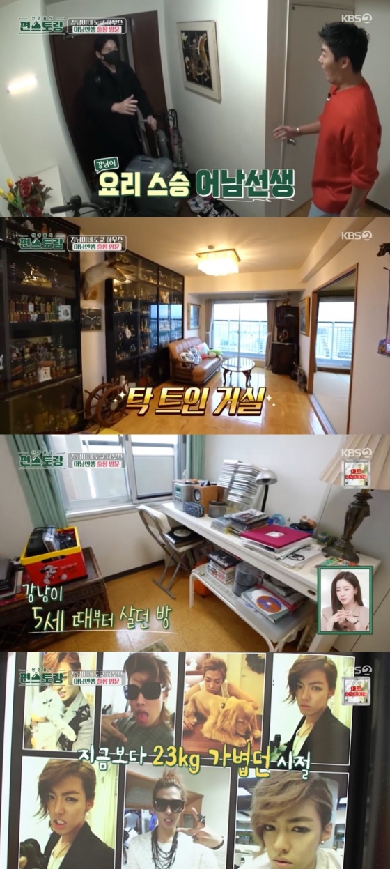 류수영은 "집이 너무 예쁘다"라며 감탄했고, 강남은 거실에 이어 5살 때부터 지내던 본인의 방도 보여줬다. 이어 그룹 M.I.B 시절 사진도 보여주며 "이때 59kg였는데 지금 85kg다"라고 밝혀 놀라움을 자아냈다.