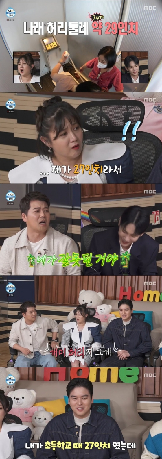 이날 박나래는 체성분 검사를 위해 허리둘레를 측정했다. 박나래는 무거운 발걸음으로 허리둘레를 쟀고, 간호사는 "74cm 나오셨다"라고 말했다.