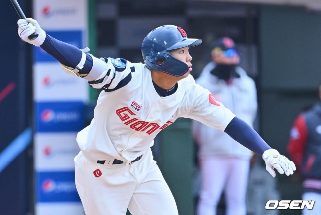 휘문고를 졸업하고 올해 롯데에 입단한 김민석은 스프링캠프 MVP를 차지할 정도로 많은 기대를 모으고 있다. 이날 경기 전까지도 시범경기 4경기에 출전해 7타수 2안타(타율 0.286)로 가능성을 보여주고 있다.