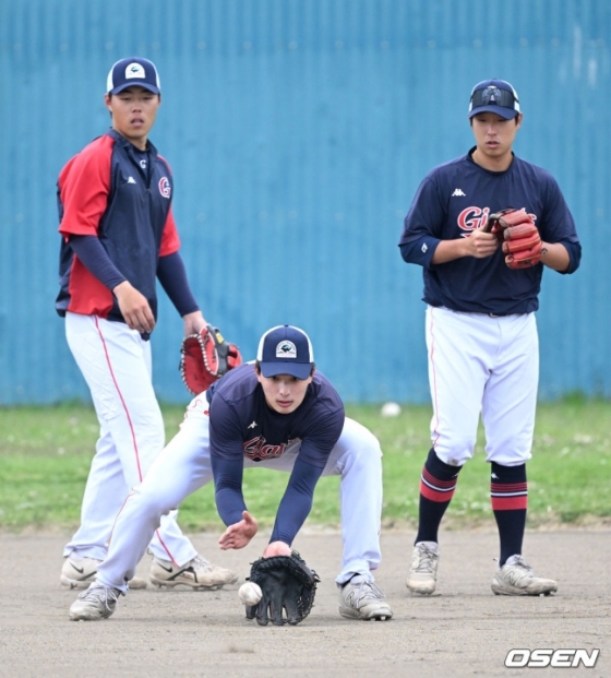롯데는 이들 외에도 아마추어 시절 유격수였던 '슈퍼루키' 김민석(19)을 최근에는 주로 외야수로 출전시키고 있다. 김민석은 캠프 출국 당시 내·외야 글러브를 모두 챙기며 대비한 바 있다.