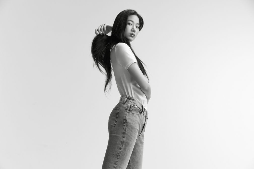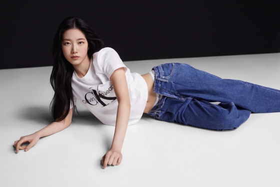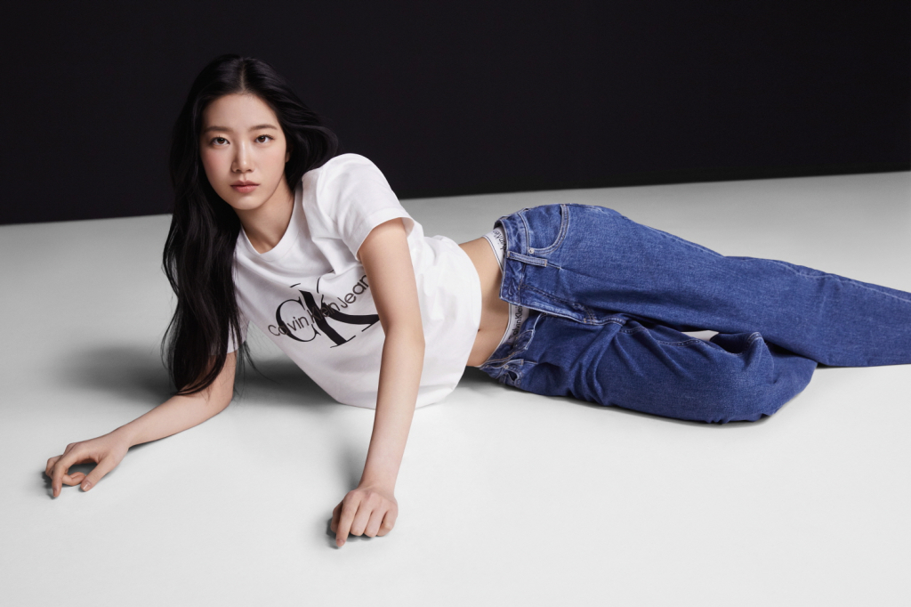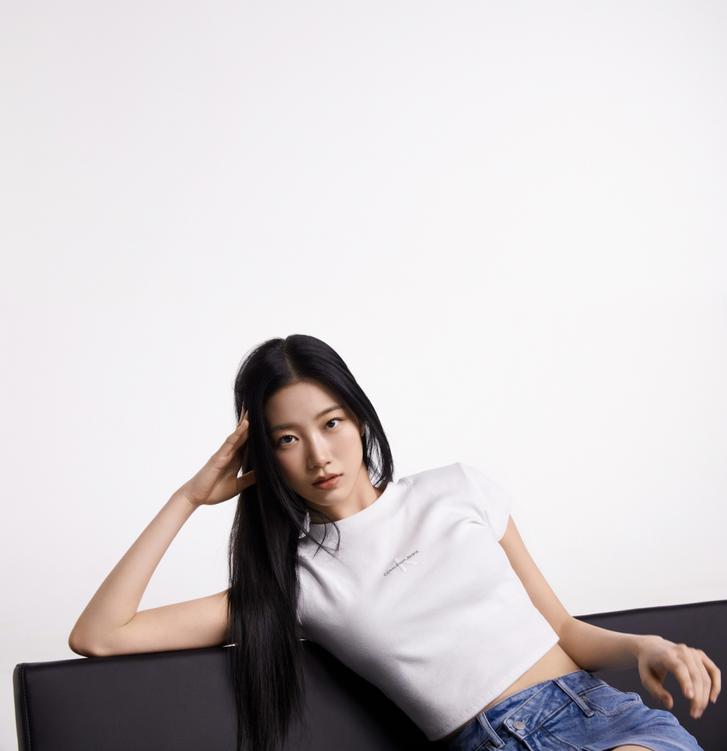 카즈하는 3월 20일 공개된 캘빈클라인 2023년 봄 신제품 컬렉션 화보에서 아이코닉한 티셔츠와 시그니처 데님 피스를 스타일링했다.