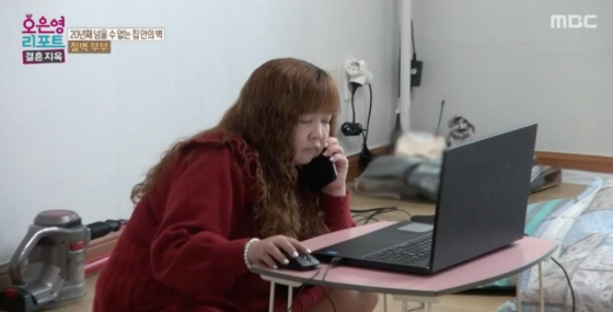 아내는 보험설계사로 5~6년째 일하고 있고 리쿠르팅 매니저로 일한다고 말했다. 아내는 전화를 하며 돈을 빌리겠다고 했지만 상대방의 언성이 높아졌고 "죄송합니다"라고 말하며 한숨을 쉬었다. 아내는 "남편이 몇달 동안 월급이 들어오지 않고 있다"라며 "이에 대해 남편에게 이야기를 해도 모른체 하는 식이어서 답답하다"라고 말했다.