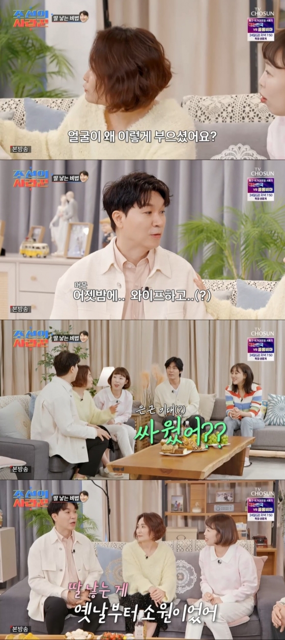 이날 박수홍은 다소 부은 얼굴로 등장했고 MC 박경림은 박수홍에게 "얼굴이 왜 이렇게 부으셨어요?"라고 물었다. 이에 박수홍은 "이런 이야기까지 해야 하나?"라며 잠시 망설이다가 이야기를 시작했다.