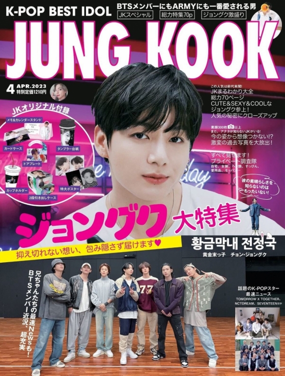 정국은 일본에서 발간되는 잡지 'K-POP BEST IDOL'의 4월호 표지를 특별 장식했다.
