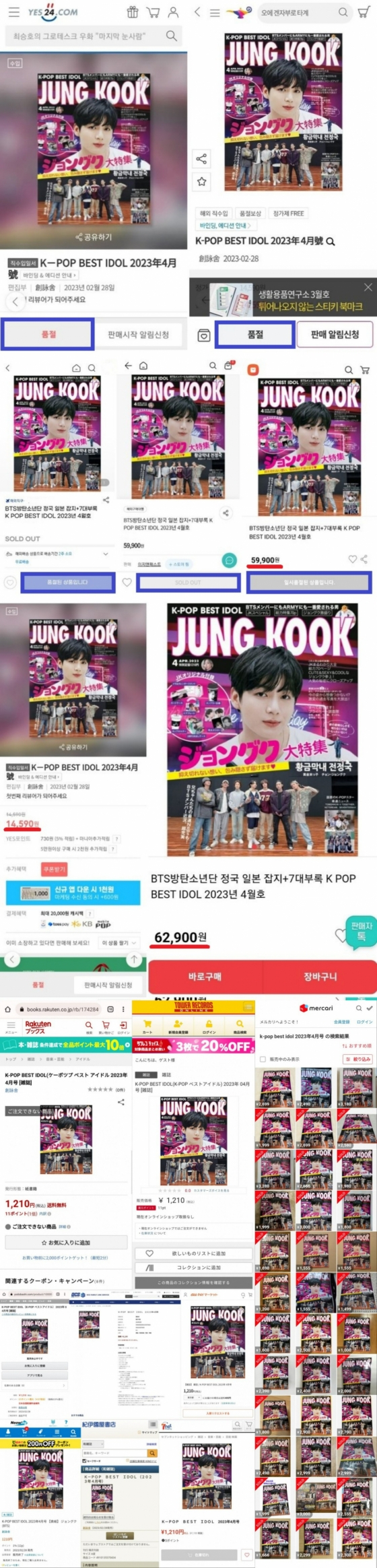 일본 최대 중고거래 플랫폼 '메루카리'에 올라온 해당 잡지들도 불티나는 판매로 인해 대부분 품절된 상태이다.