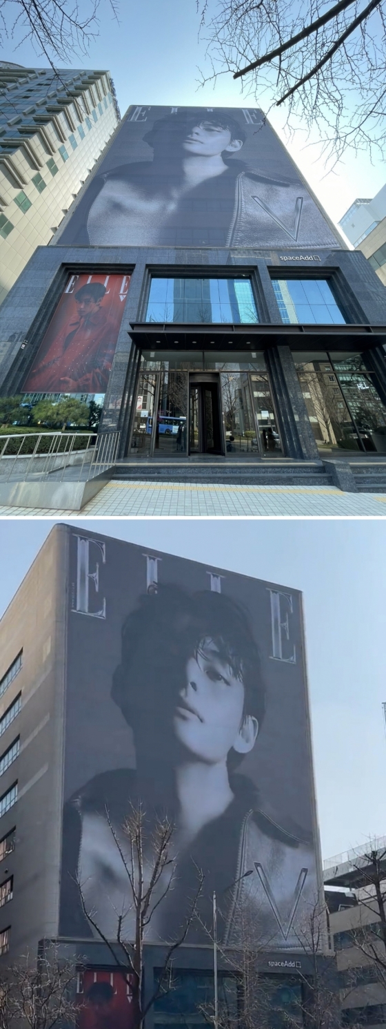 뷔의 팬클럽 '바이두 뷔바'는 뷔가 단독 표지 모델로 나선 엘르 코리아 4월호에 지면 광고를 게재한다.