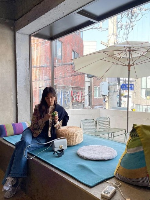 사진에서 고소영은 힙한 매력이 물씬 풍기는 스타일링을 완성하고 어딘가에 앉아 포즈를 취하고 있다.