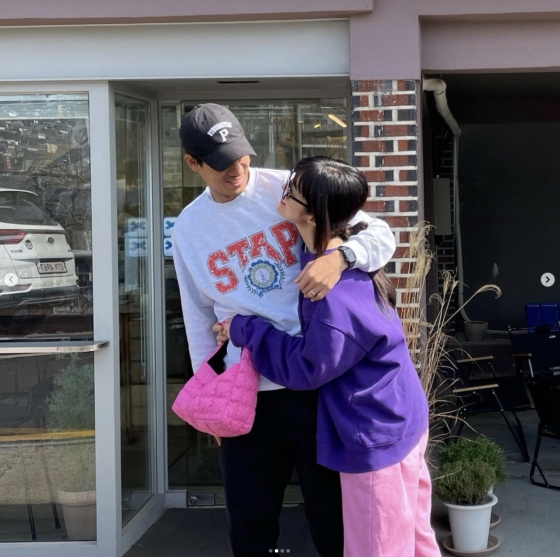 공개된 사진 속 김성은은 남편 정조국의 허리를 감싸고 정조국을 바라보며 미소를 지었다. 정조국은 김성은 어깨를 감싸 달달함을 자아냈다.