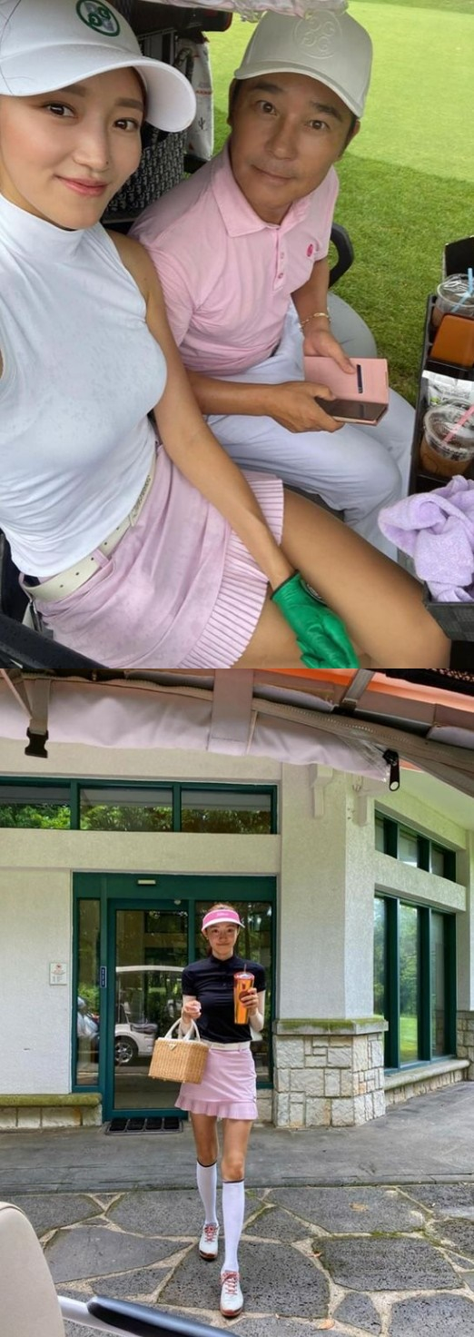 사진 속 서하얀과 임창정은 하얀색과 분홍색으로 색상을 맞춘 커플 골프룩을 입고 데이트를 즐기고 있다. 또 다른 사진에서는 서하얀이 마네킹 같은 몸매를 뽐내고 있어 눈길을 끈다.