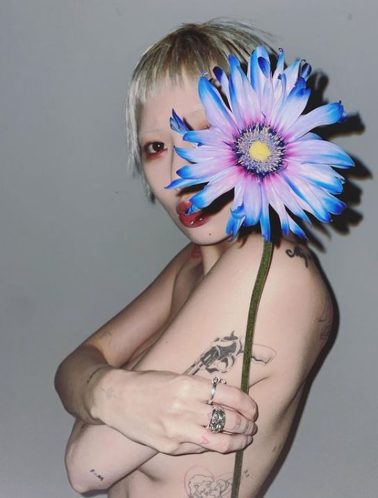 공개된 사진에는 현아가 큰 꽃을 든 채 어딘가를 응시하는 모습이 담겼다.