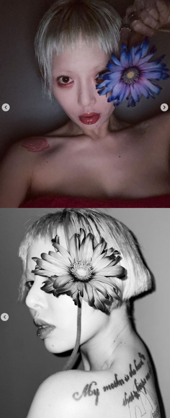 현아는 22일 자신의 인스타그램에 꽃 이모티콘과 함께 사진 여러 장을 게재했다.