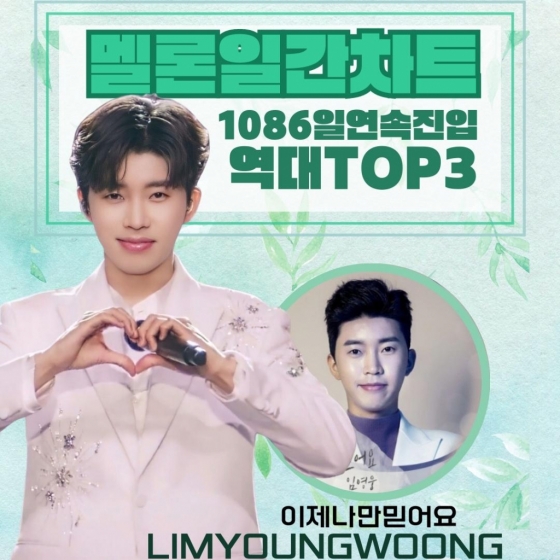 [문완식 스타뉴스 기자] 가수 임영웅이 국내 최대 음원 플랫폼 멜론(Melon)에 1086일 연속 진입하며 남다른 인기를 빛냈다.