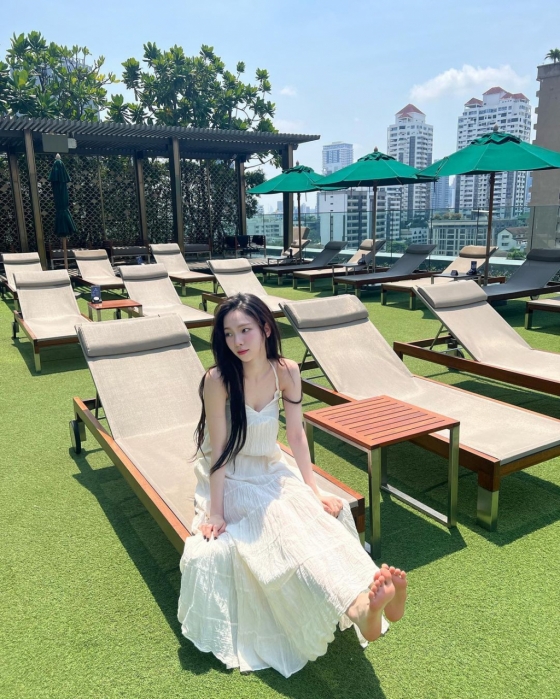 사진 속 카리나는 베이지 컬러의 원피스를 입고 물장난을 치고 있는 모습. 카리나는 긴 생머리를 한쪽으로 넘기면서 가느다란 목선을 뽐내는가 하면, 귀여운 미소를 지으며 글로벌 팬들에게 힐링을 선사했다.