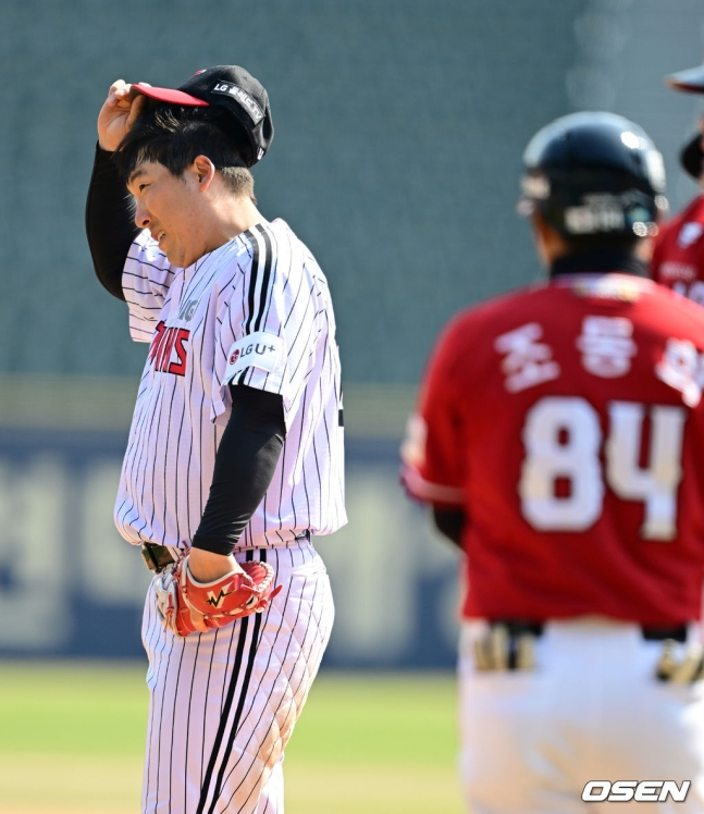 6회 김현수가 또 실책을 범했다. 선발 이민호에 이어 임찬규가 마운드에 올랐다. 1사 후 한유섬과 10구 승부 끝에 볼넷을 내준 임찬규. 이어 전의산을 투수 앞 땅볼로 유도했으나, 1루수 김현수가 포구에 실패하며 2, 3루가 됐다. 김현수의 포구 실책이었다. 임찬규는 후속 대타 최주환을 포수 파울플라이 아웃, 박성한을 루킹 삼진으로 각각 잡아내며 실점 위기를 넘겼다.