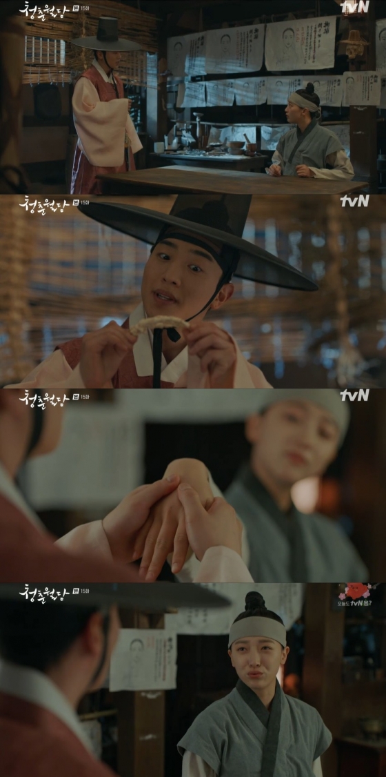 27일 방송된 tvN 월화드라마 '청춘월담'에서는 김명진(이태선 분)이 민재이(전소니 분)의 손을 잡고 나서 정체를 의심하는 장면이 그려졌다.