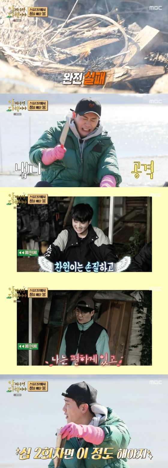 이후 붐은 불을 담당하고 영탁은 생선 손질, 송진우는 해감을 맡았다. 붐은 장작을 넣고 불을 붙였지만 불이 금방 꺼져 당황했다. MC 안정환은 "붐 씨가 불 못 붙인다고 엄청 웃었었다"고 전했다. 붐은 인터뷰에서 "불 피우는 게 쉽지 않다"며 반성했다. 이에 안정환이 "쉽지 않지? 요놈아"라며 붐을 놀려 웃음을 안겼다.