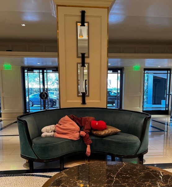 김고은이 호텔 로비의 소파에서 뻗은 모습을 공개했다.