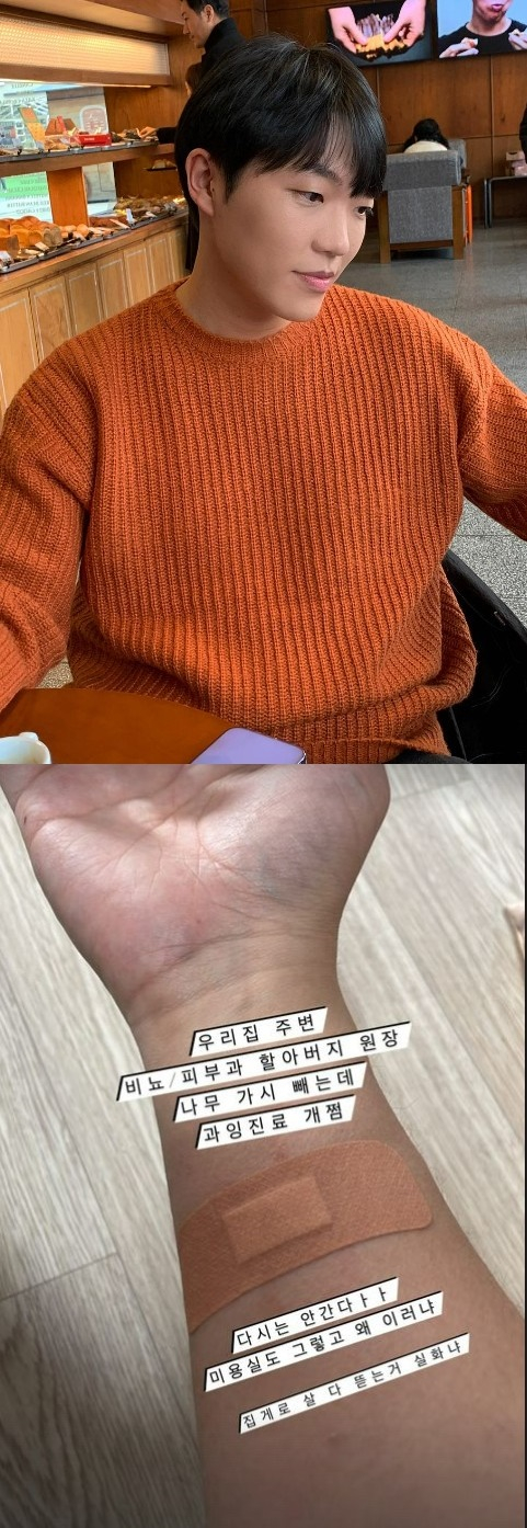 최고기는 28일 자신의 인스타그램에 "우리 집 주변 비뇨·피부과 할아버지 원장. 나무 가시 빼는데 과잉진료. 다시는 안 간다. 미용실도 그렇고 왜 이러냐. 집게로 살 다 뜯는 거 실화냐"라는 글과 함께 치료받은 후의 사진을 게재했다.