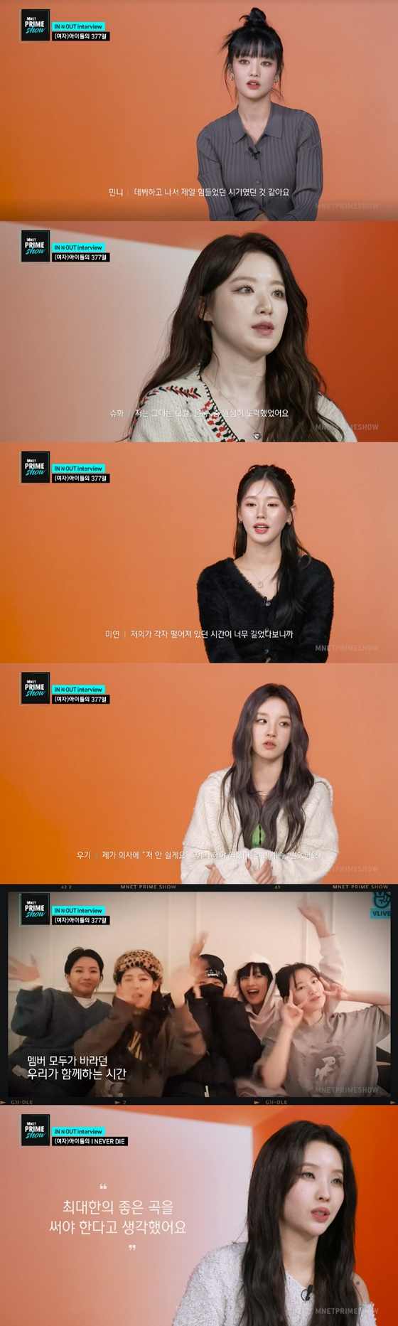'프라임쇼'에서 (여자)아이들 멤버들은 수진의 탈퇴, 1년 넘는 공백기에 대한 속내를 꺼냈다.