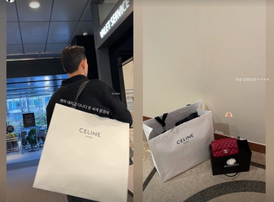 공개된 사진 속엔 조유민이 명품 브랜드 C사의 제품을 구매하고 나오는 모습이다. 뒷모습 뿐인데도 기쁨이 느껴져 이목을 끈다. 이후 그는 "사실 상부상조"라며 조유민에게 선물받은 명품 C사 가방을 공개해 반전을 선사했다.