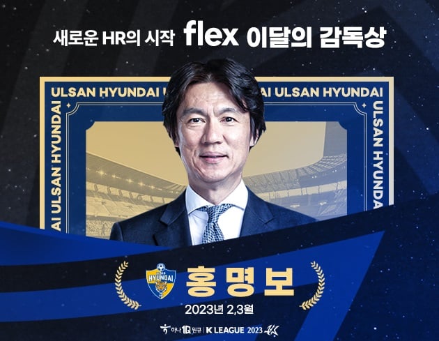 울산의 2, 3월을 성공적으로 이끈 홍명보 감독은 뛰어난 리더십과 지도력을 인정받아 ‘flex K리그 이달의 감독상’을 수상하게 됐다.