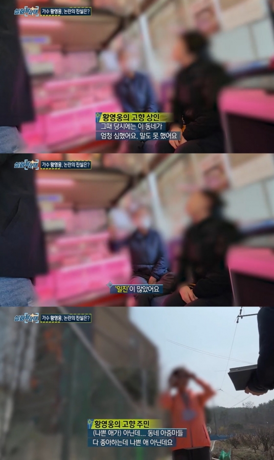 또한 "황영웅은 나쁜 애가 아니다. 동네 아줌마들 다 좋아하는데 나쁜 애 아니다. 나 지금도 황영웅 노래 맨날 듣고 있다", "15년 전만 해도 OO중학교 애들이 못됐었다. 그때 당시에는 이 동네가 엄청 심했다. 말도 못했다. 일진이 많았다. 황영웅이 조금 (일진) 그렇긴 했어도 청소년기에 다 (반항) 그런 게 있지 않나"라며 황영웅의 각종 의혹들을 믿을 수 없다는 반응을 보였다.