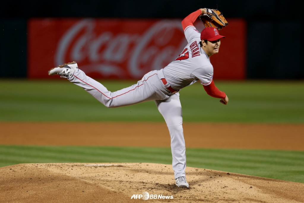 오타니는 투수로도 맹활약을 펼쳤다. 1회말 선두타자 토니 켐프에게 스트레이트 볼넷을 허용했으나, 이후 세 타자를 모두 범타 처리했다. 2회는 삼진 2개 포함, 삼자 범퇴 처리. 3회에도 삼자 범퇴 행진을 이어 나갔다.