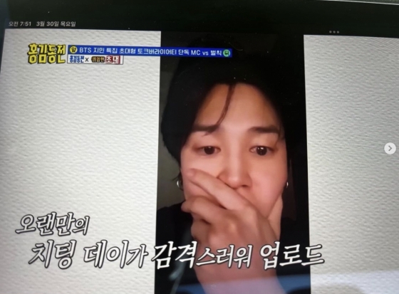 공개된 사진에는 지민이 출연한 KBS 2TV 예능 '홍김동전' 화면이 담겼다. 홍진경은 지민과 함께 방송했던 추억을 떠올리며 지민에게 사랑고백해 웃음을 안겼다.