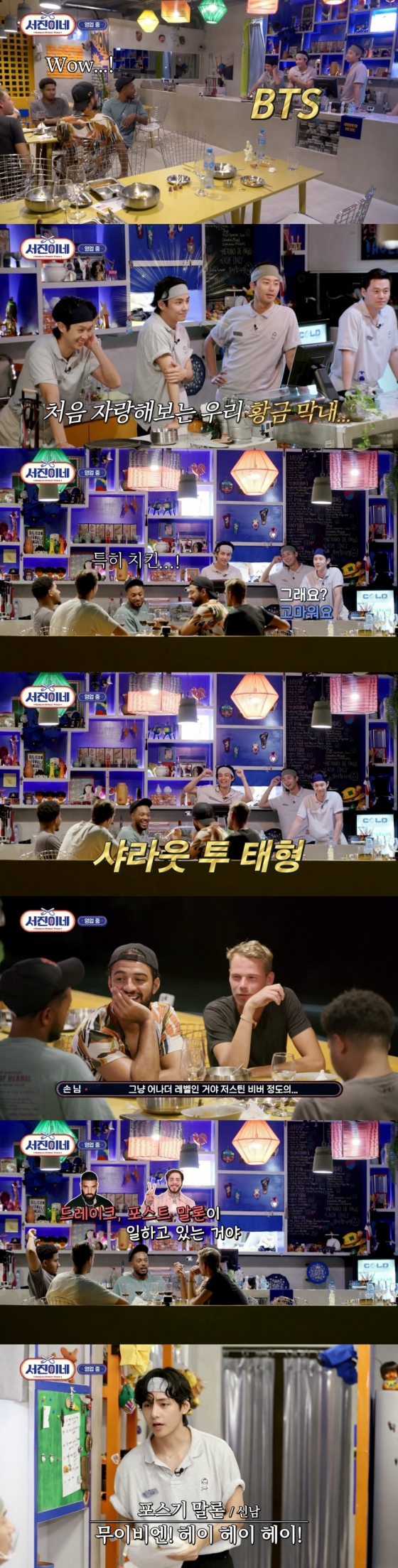 최우식은 자신의 홍보로 가게를 찾은 이날의 마지막 손님들에게 "Do you know BTS?"라며 뷔와 '마블 가이' 박서준을 친구라고 소개했다.