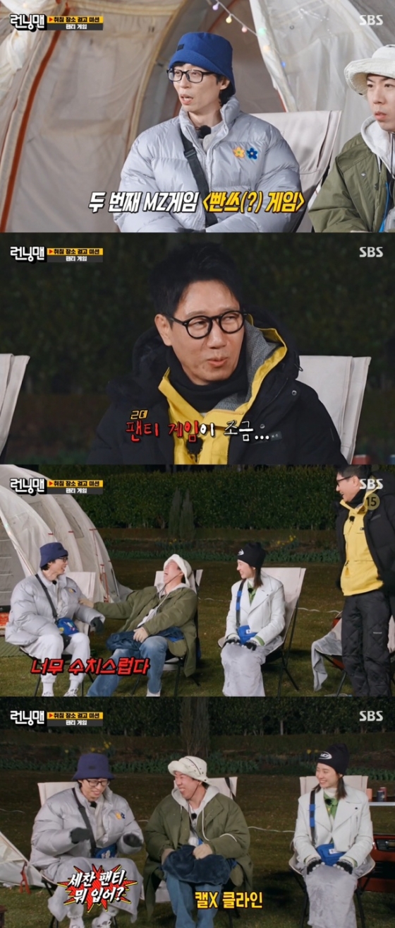지석진은 "우리가 격조가 있는데 팬티 게임이 좀 그렇다"라며 민망해했다. 그러나 게임은 시작됐다. 유재석은 호쾌하게 "세찬 팬티"라고 외쳤지만 이내 곧 민망해하며 "세찬 팬티 뭐 입어"라고 말을 바꿨다. 양세찬은 "XX 클라인"이라며 실제 팬티 브랜드를 말했고, 유재석에게도 어떤 팬티를 입냐고 물었다. 이에 유재석은 "엠 XX 오 아르X니"라고 맞받아쳤다. 이를 들은 전소민은 "좋은 거 입네, 좋은 거 입어"라며 노래를 불렀다.