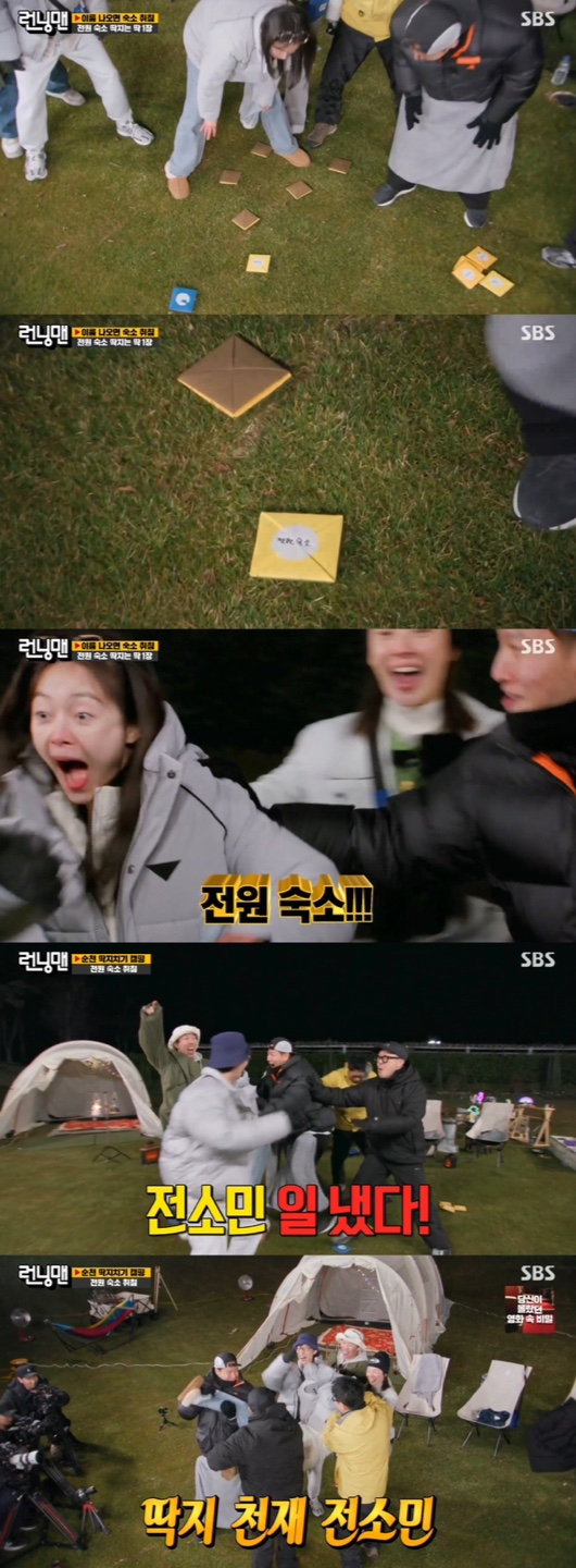 [정은채 스타뉴스 인턴기자] '런닝맨' 전소민이 멤버 전원에게 실내 취침의 영광을 안겼다.