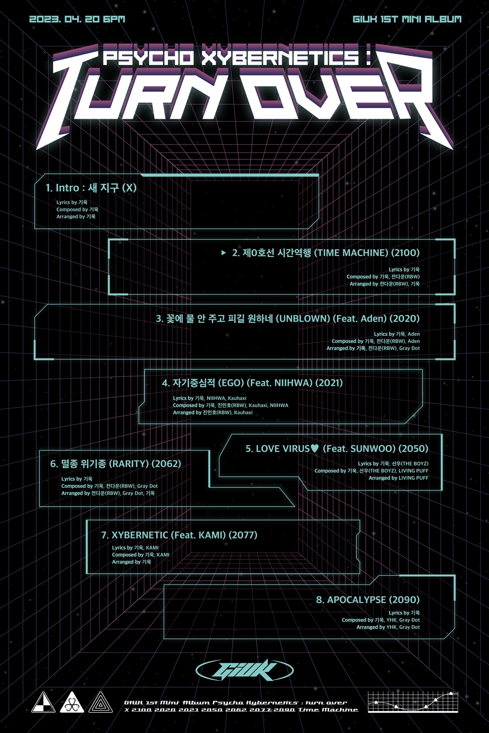 기욱은 8일 0시 공식 SNS에 첫 번째 미니앨범 'Psycho Xybernetics : TURN OVER'(사이코 사이버네틱스 : 턴 오버)의 트랙리스트 이미지를 게재했다.