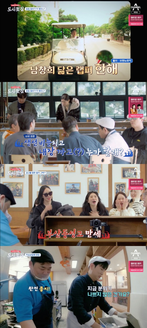 13일 방송된 채널A 예능 프로그램 '나만 믿고 먹어봐, 도시횟집'에서는 일일 아르바이트생 가수 한해, 백호와 함께 세 번째 영업을 하는 멤버들(이덕화 이경규 이수근 이태곤 김준현 윤세아)의 모습이 그려졌다.