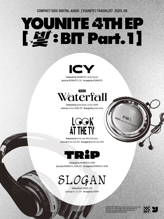 28일 0시, 유나이트는 공식 SNS 채널들을 통해 레트로한 디자인이 돋보이는 새 앨범 '빛 : BIT Part.1'의 트랙리스트를 공개해 이목을 집중시켰다. 해당 트랙리스트에 따르면 이번 앨범에는 타이틀곡 'WATERFALL'을 포함 'ICY', 'LOOK AT THE TV', 'TRIP', 'SLOGAN'까지 총 5곡이 수록됐다.