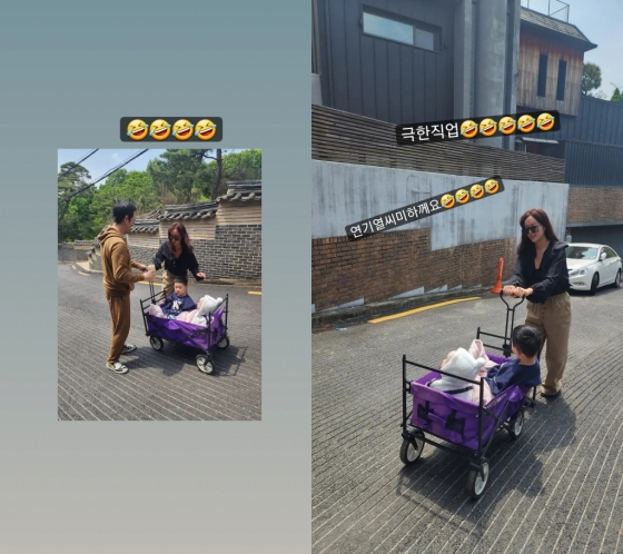 또 다른 사진에 따르면 황정음은 주말을 맞아 남편, 두 아들과 함께 외출을 나선 것으로 보인다. 웨건에 두 아들을 태운 황정음은 "다음에는 승차감 좋은 걸로 준비할게"라고 했다. 이어 사진 속 황정음은 지친 표정을 짓고 있으며 "극한직업. 연기 열심히 할게요"라고 육아의 고충을 토로했다.