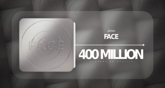 지민의 '페이스'는 발매 41일 만에 세계 최대 음원 플랫폼 스포티파이(Spotify)에서 4억 스트리밍을 돌파했다. 이는 종전 90일 기록을 49일이나 앞당긴 스포티파이 역사상 K팝 솔로 가수 앨범 최단 기록이다.