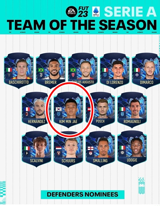 이러한 활약을 인정받아 김민재는 2022~23시즌 세리에A 올해의 팀 45인 후보에도 이름을 올렸다. 김민재는 총 13명이 선정된 수비수 부문에 포함됐다. 이 가운데 김민재와 같은 포지션 센터백은 8명이다. 크리스 스몰링(AS로마), 글레이송 브레머(유벤투스), 조르지오 스칼비니(아탈란타), 알레시오 로마놀리(라치오) 등 리그 정상급 수비수들과 경쟁한다. 팬투표 50%, 미디어 관련 투표 50%를 통해 최종 베스트11을 선정한다. 유럽축구 통계매체 후스코어드닷컴 기준, 김민재는 세리에A 센터백 중 가장 높은 평점 7.10을 기록 중이다. 이변이 없다면 올해의 팀 베스트11에도 이름을 올릴 것으로 보인다.