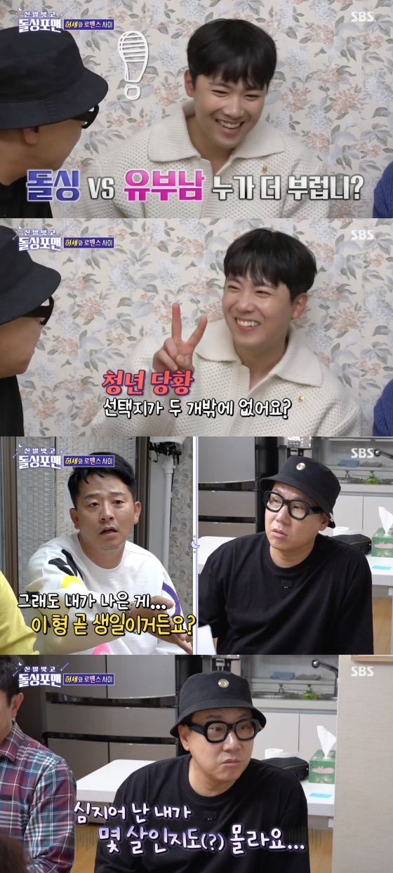 한편 '돌싱포맨' 멤버 이상민은 이홍기에 "돌싱이 부럽니? 결혼한 재욱이 형이 부럽니?"라고 물었다. 이홍기는 "선택지가 두 개밖에 없어요?"라며 당황했다. 이상민은 "우리는 자유로워. 우리가 사고 싶은 거 사면 되고 미역국도 그냥 먹으면 돼"라고 어필했다.