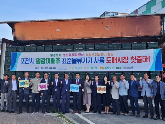 로지스올그룹 계열사 한국컨테이너풀(이하 KCP)은 지난 9일 포천시, 경기농협, 가산농협, 동화청과와 함께 'ESG 경영 실천 물류기기 활성화 시범사업' 업무협약 및 첫 출하 기념식을 진행했다고 18일 밝혔다.