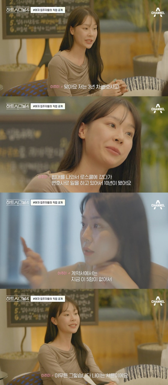 이날 이주미는 3년 차 변호사라는 직업을 밝혔다. 그는 "법대에 나와서 로스쿨에 갔다가 변호사로 일하고 있다"고 말했다.
