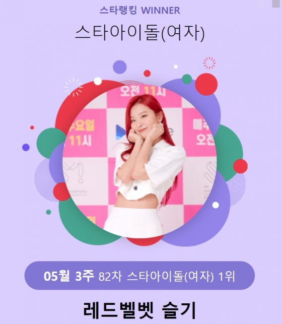 레드벨벳 슬기, 3주 연속 스타랭킹 女아이돌 1위 '수성'